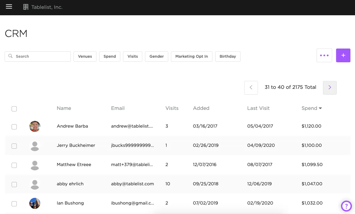 TablelistPro's CRM gives you key customer data to boost retention, improve service, and run targeted marketing campaigns.
