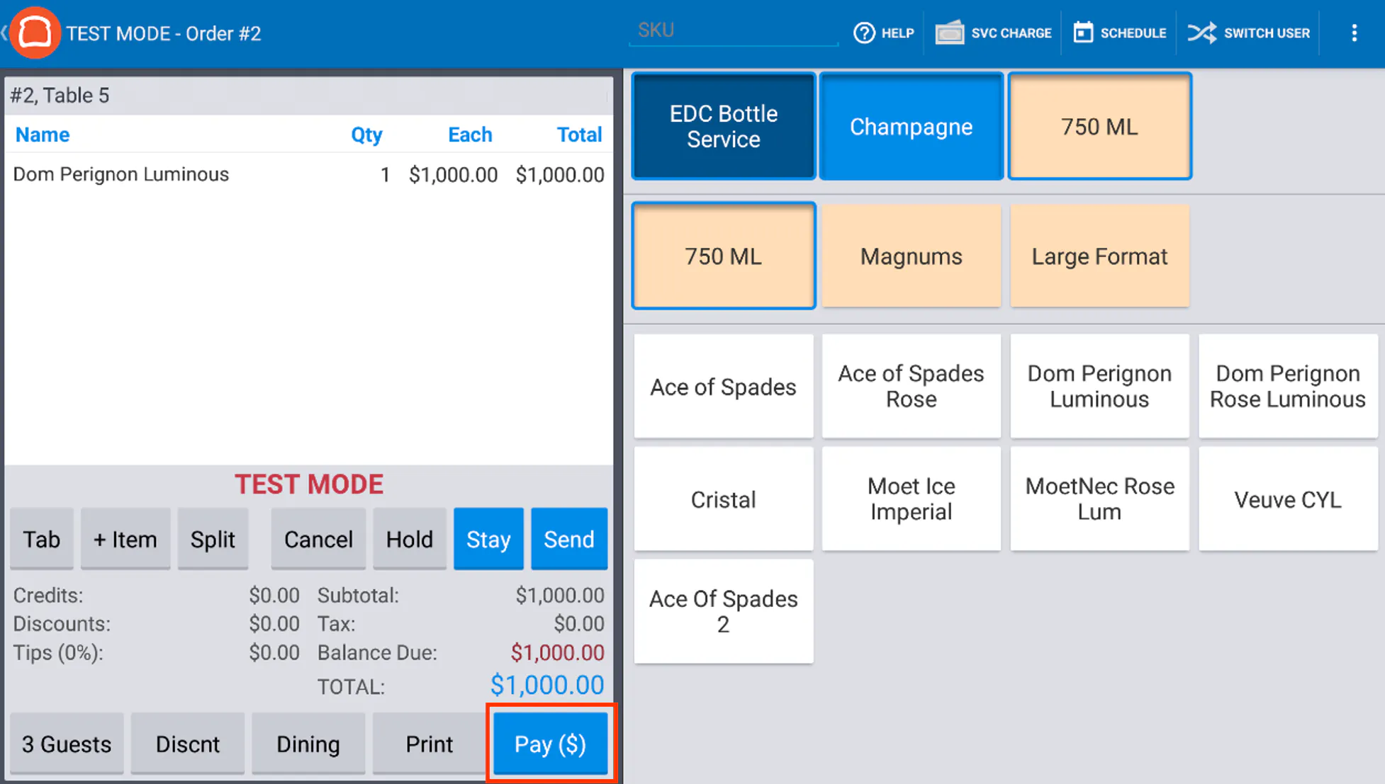 When a guest has completed their event or is paying for a table that required an advance deposit through TablelistPro, use the payment option you created to subtract the deposit from the check total.