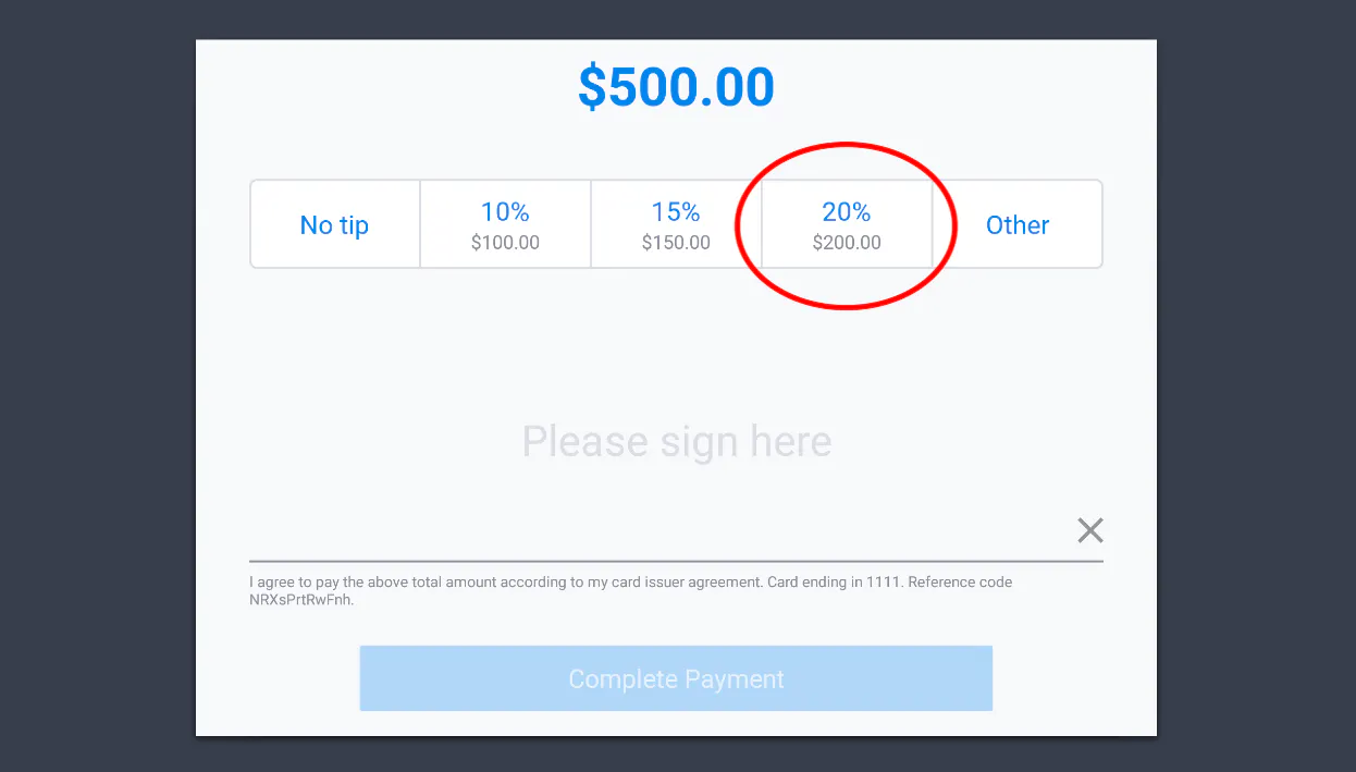 When the guest enters a tip, the recommended tip amounts will be based on the pre-deposit check total.