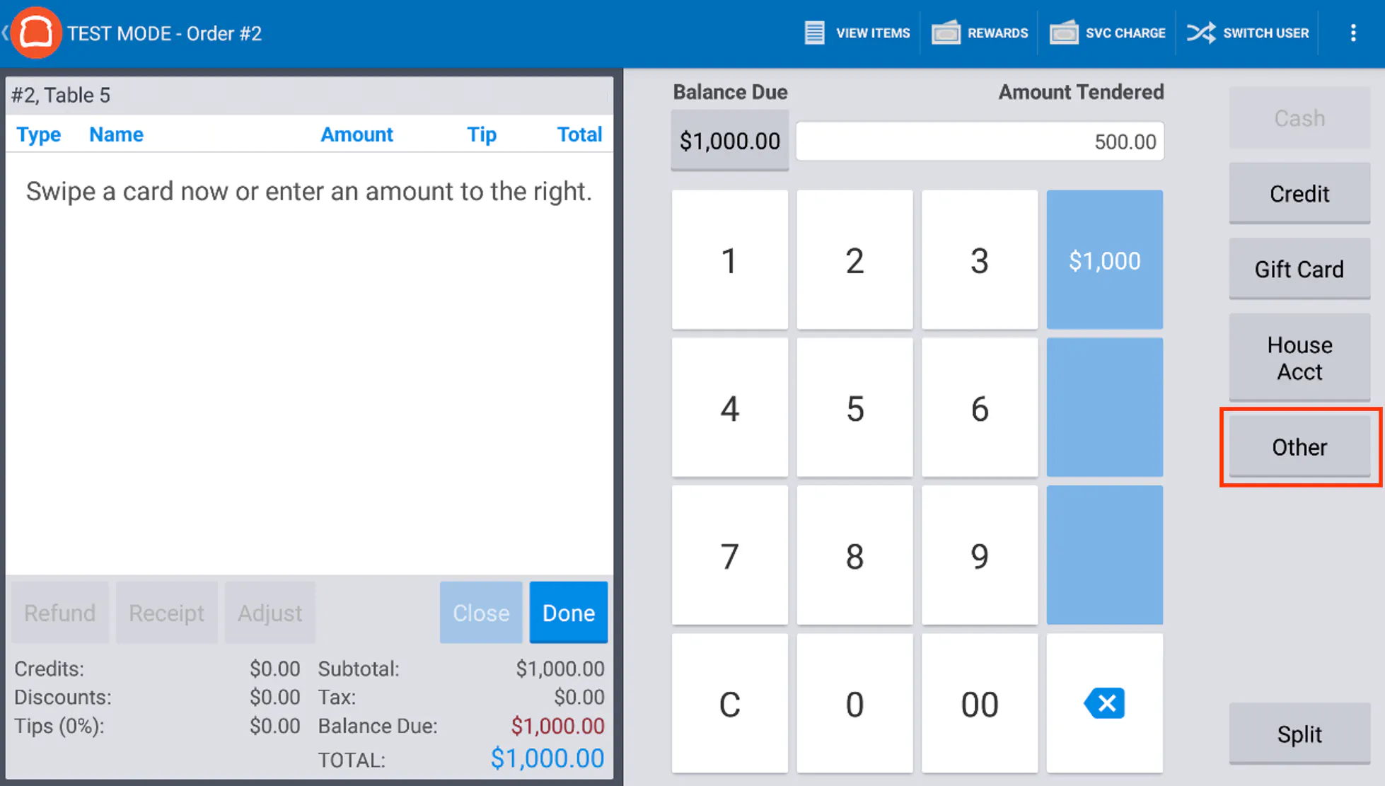 - Use the keypad to enter the deposit amount ($) in the Amount Tendered field. Then select Other.