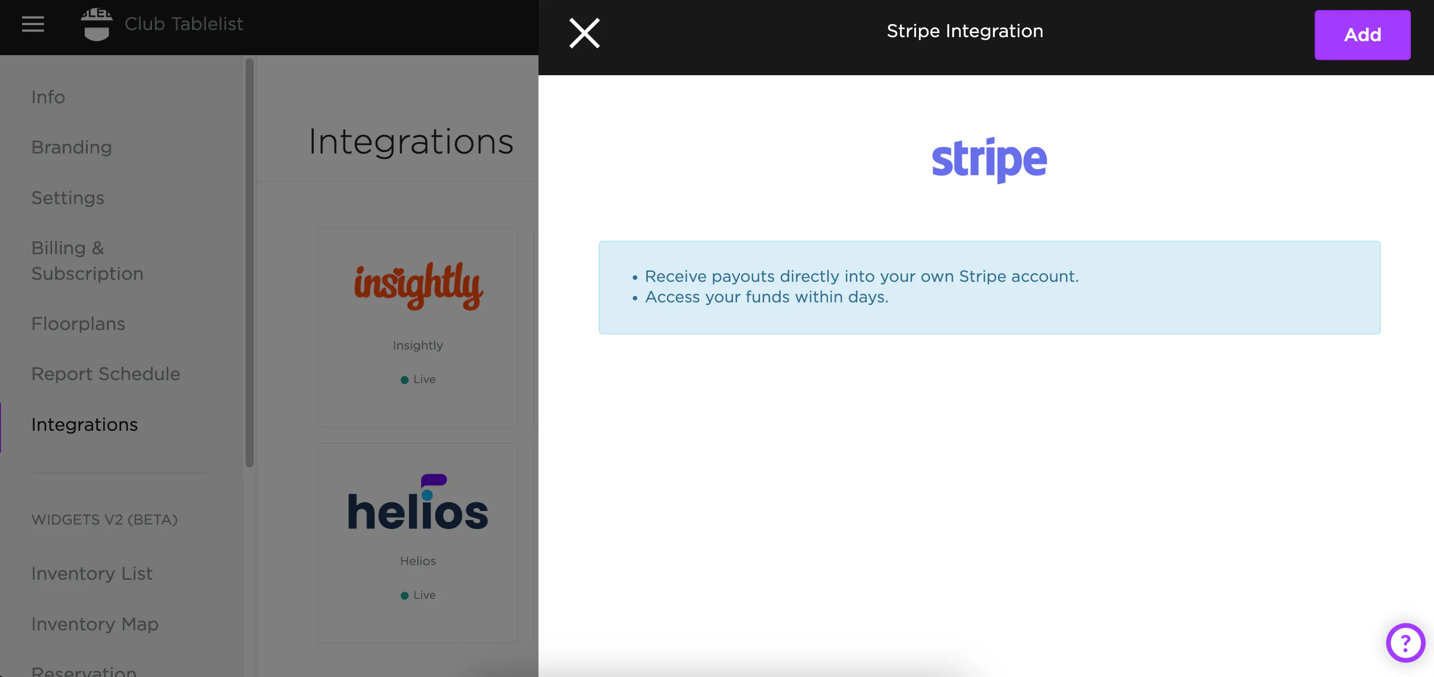 TablelistPro's Stripe Connect integration lets you receive payouts directly into your own Stripe account and access your funds within days.