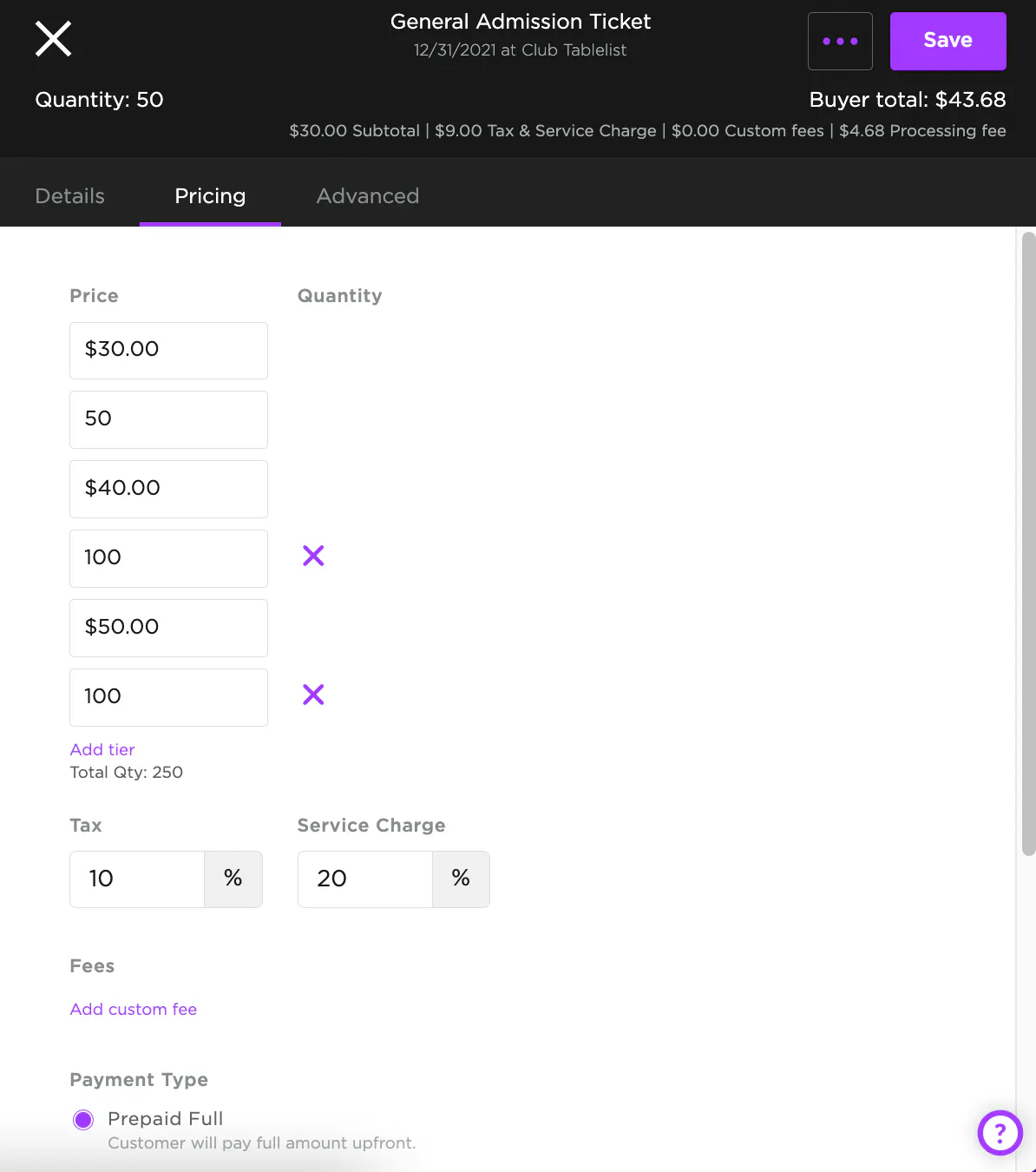To tier your pricing, click Add tier, then set the price and quantity for each tier.