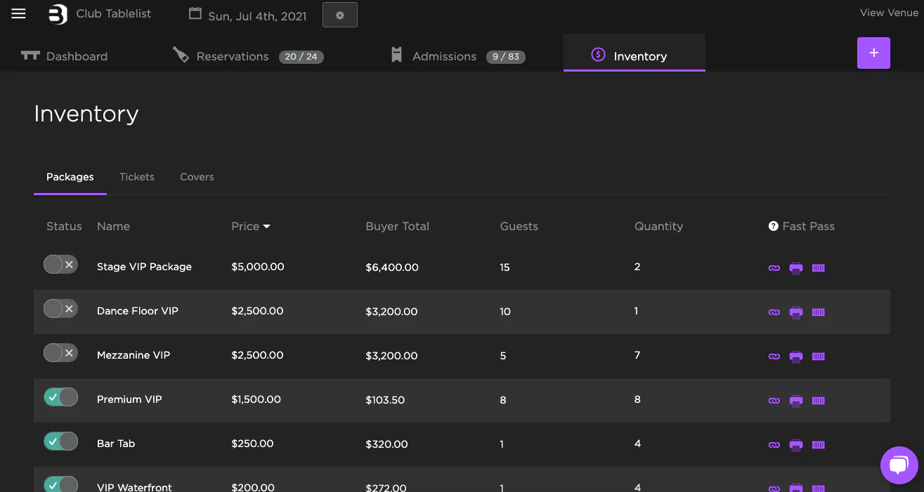 VIP Tables are referred to as Packages on the TablelistPro dashboard.