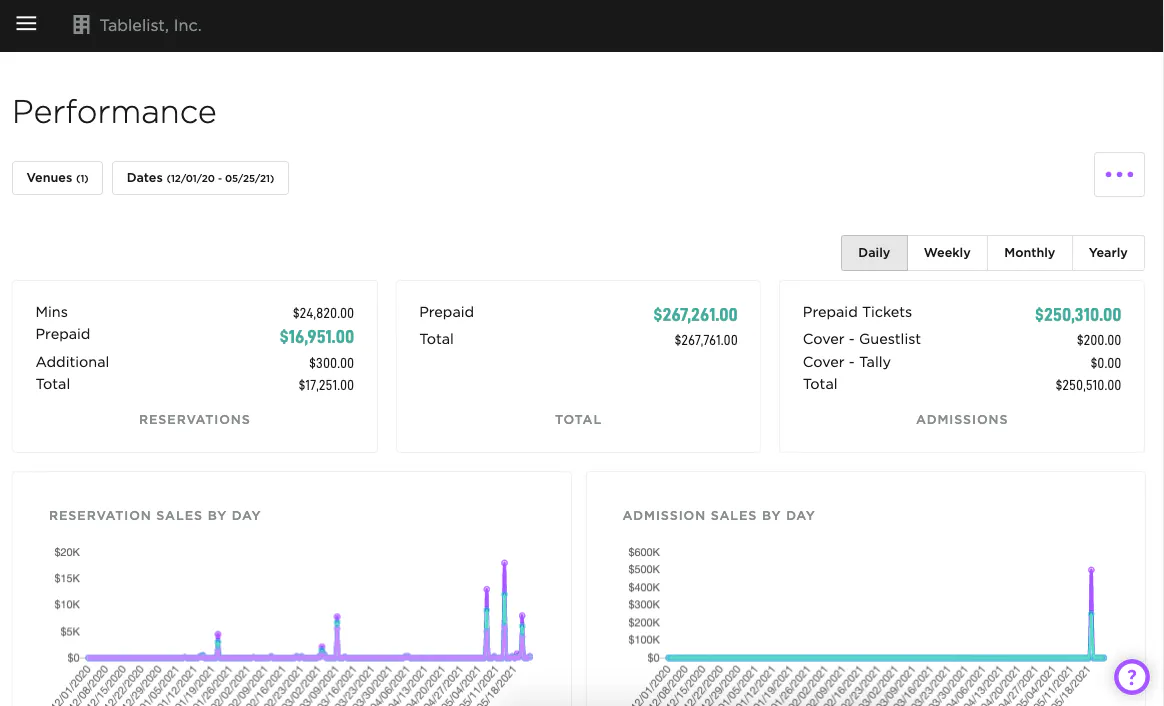 Get a snapshot of your venue's performance by opening the sidebar and clicking Analytics.