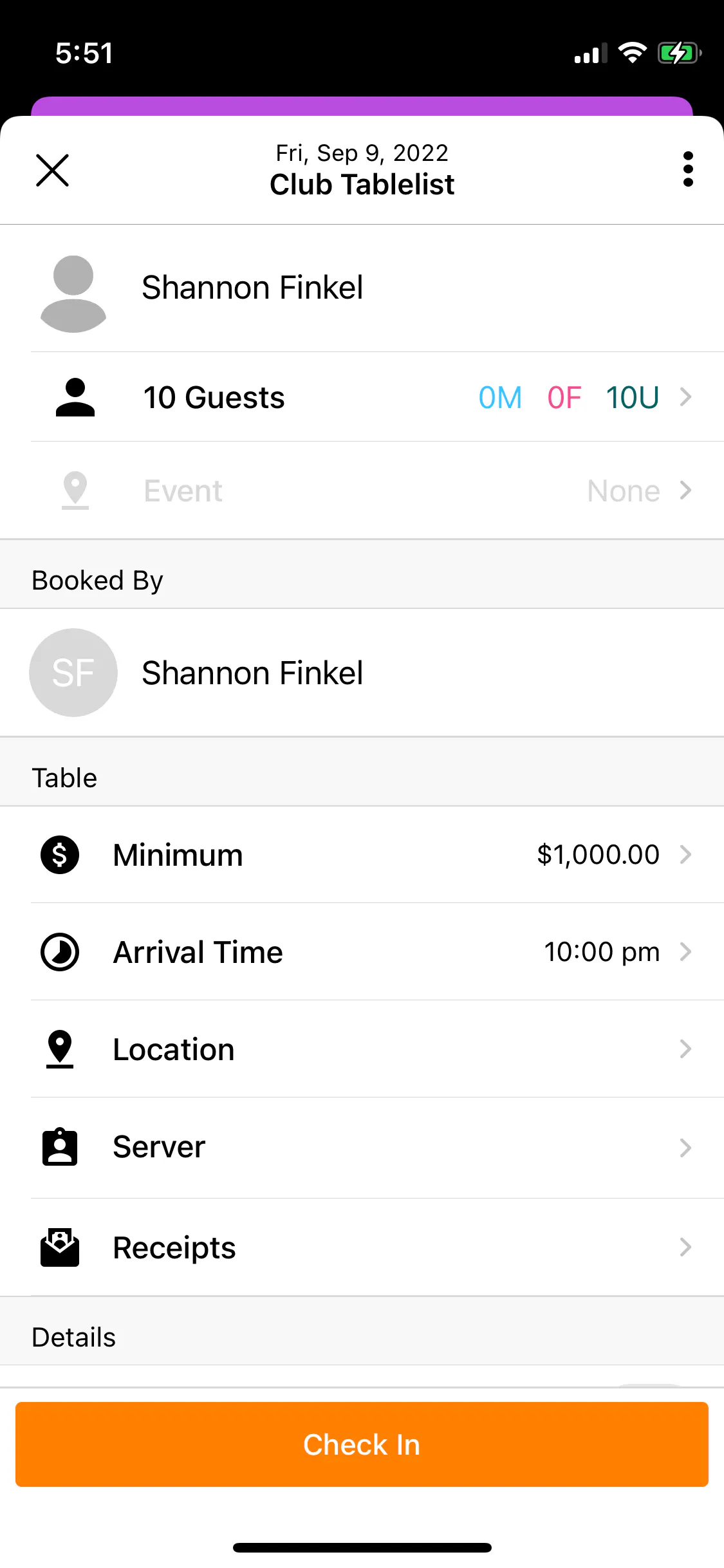 To assign a reservation to a VIP table on the app, tap the Reservations tab and open the reservation.