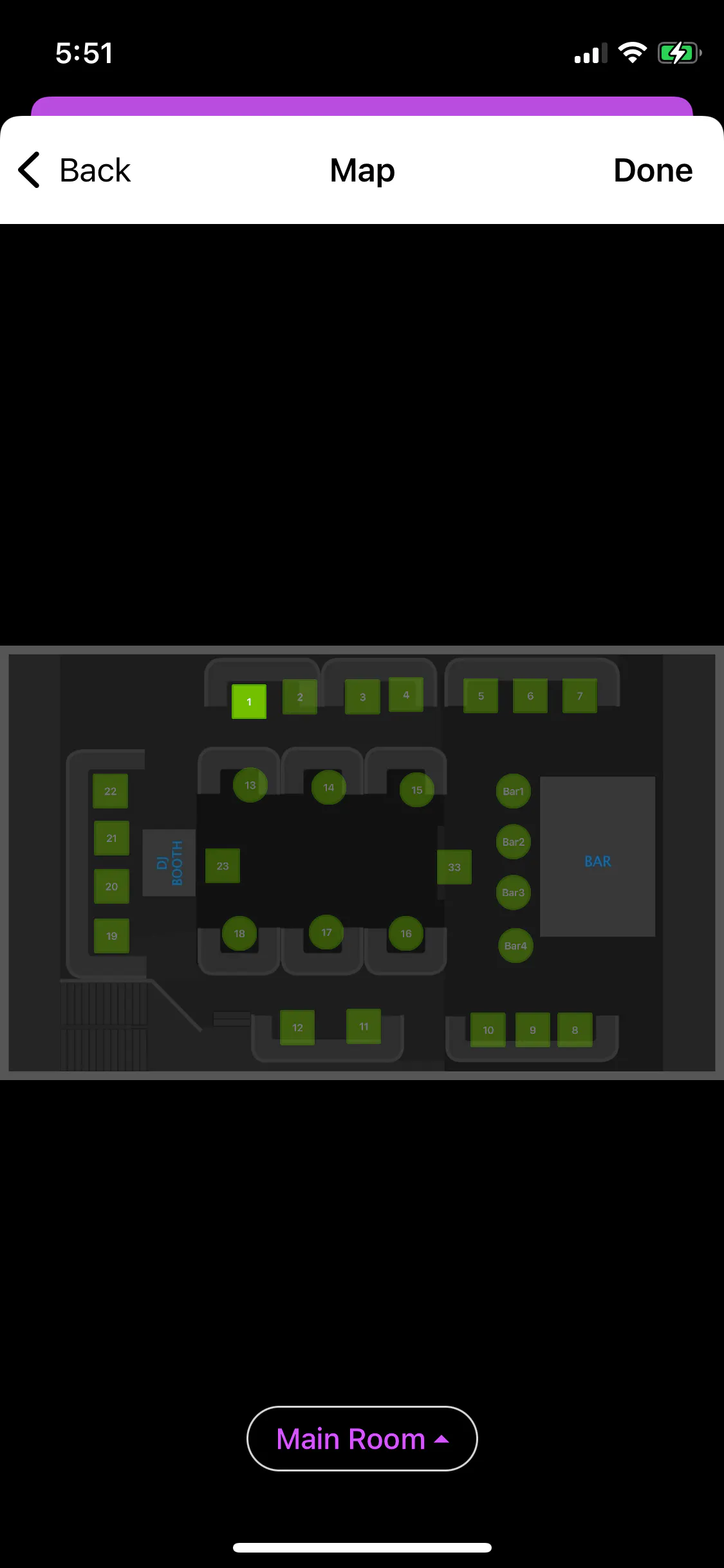 Tap Location to see your available tables for the night. You can assign from either the List view or the Map view.