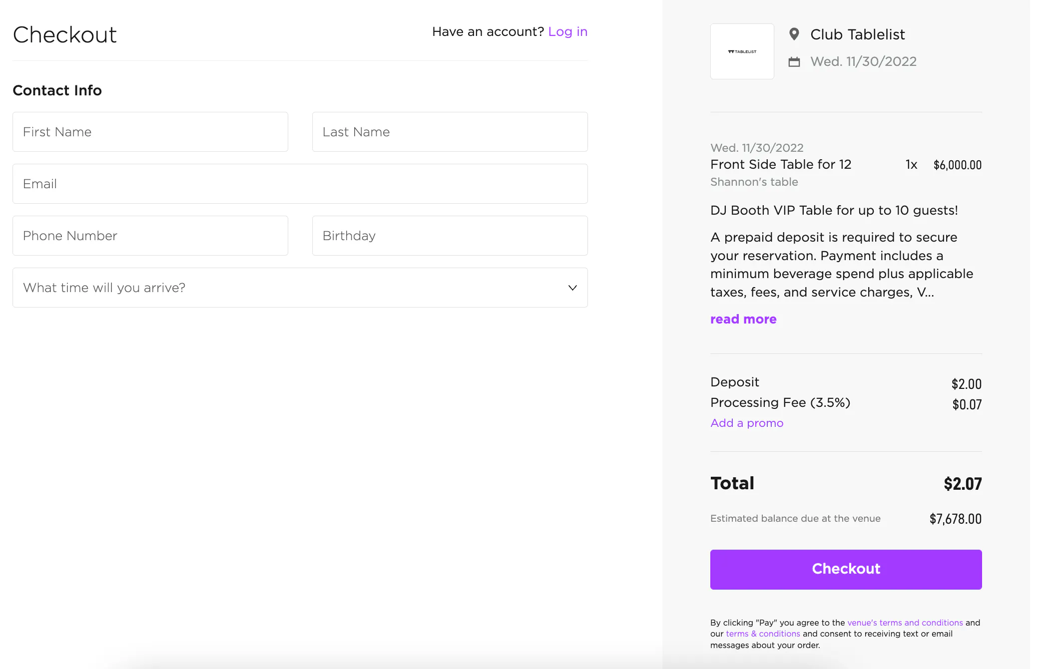 Fast Pass is the fastest way to take payments in advance. Customers skip the line by purchasing cover, tickets, or VIP tables directly from their phones. No special hardware needed, and they don't have to create an account.