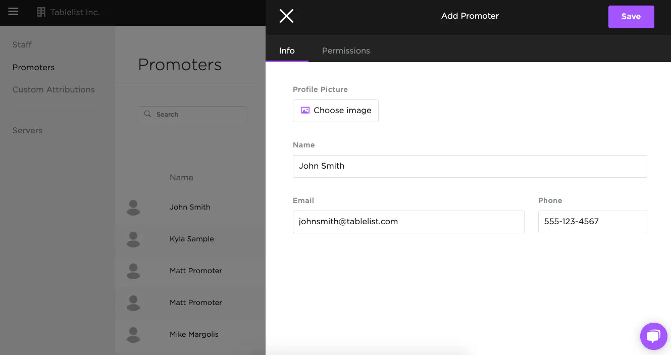You must set their permissions before they can access TablelistPro. Head to Choosing Promoter Permissions for details.